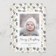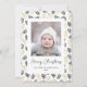 Envoyez des salutations de vacances personnalisables et personnalisées à vos amis, vos collègues et votre famille en cartes photos simples, minimalistes, élégants, amusants, festifs et modernes ! Un beau cadre de variété de cadeaux de Noël dorés et noirs et des cadeaux enveloppés de rubans entourent votre photo sur du papier rond à coquille. Le message de bienvenue "Joyeux Noël" est écrit en calligraphie élégante, et ci-dessous présente votre message de bienvenue personnalisé de votre nom de famille dans la typographie moderne. Reverse pour révéler une belle les cadeaux de Noël complets et présente arrière - plan motif.