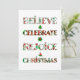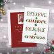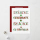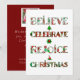 Diffusez la joie de Noël avec ce design mignon à motifs qui présente "Croire, Célébrer, Se réjouir, Noël" dans une typographie festive remplie de motifs de vacances rouges et verts. Chaque lettre met en valeur des ornements, des sapins de Noël, des poinsettias et des motifs saisonniers classiques qui apportent joie et chaleur à vos célébrations.