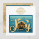 Carte de Noël Silhouette de Noël Silhouette Fêtez la joie de Noël avec cette carte de vacances incroyablement unique et élégante, un design original de votre part! Cette carte intègre brillamment la scène de la Nativité dans la lettre "O" du mot "JOY", créant un visuel puissant et significatif. La silhouette de Marie, Joseph et le bébé Jésus dans la crèche est placée contre un ciel turquoise et doré, évoquant la magie de la nuit sainte. Deux anges soufflant des trompettes flanquent les "J" et "Y", avec l'étoile de Noël au-dessus, le tout dans le panneau turquoise central. Ce panneau est encadré par un riche arrière - plan en marbre doré aux accents scintillants subtils, ajoutant une touche de luxe moderne et de glamour festif. De délicieux flocons de neige et des étoiles sont disséminés dans l'ensemble, mettant en valeur le thème des vacances d'hiver. Cette carte est parfaite pour ceux qui veulent envoyer un message religieux de Noël avec une touche contemporaine et artistique. Il combine magnifiquement le sens traditionnel avec un design sophistiqué et attrayant.