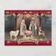 Celebrate the holidays with this red religious Christmas postcard featuring the nativity scene.