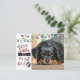 Humorous dog Phoholiday greeting postcard featuring a photo of YOUR dog or you can send it as with the saying "Dear Santa, the cat did it". The back has an editable YAPPY HOWLIDAYS greeting and a place to add a personal message or the sample text can be deleted to leave the area blank for handwriting messages. (PHOTO TIP: For fastest/best results, choose a photo with the subject in the middle and/or pre-crop it to a similar shape as shown BEFORE uploading and it will fill in the Phospace provided parfaite ectly) Contact the designer if you’d like this design modified or on another product.