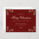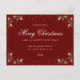 Elégante carte postale rouge et or de vacances avec de la neige, des saints et des baies sur un arrière - plan rouge. Personnalisez facilement cette carte postale de vacances en ligne.