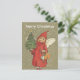 Cette carte postale a un petit ange blond victorien de fille avec les ailes blanches portant un cap à capuchon rouge tenant un arbre et des paquets de Noël sur un arrière - plan bronzage avec la neige en baisse. Customisez le texte de Joyeux Noël avec le modèle.