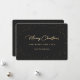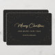 Élégant carte de fin de année noir et or avec une neige dorée sur un arrière - plan noir. Personnalisez facilement ces cartes de fin de année minimalistes avec votre nom de famille et votre texte.