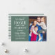 This stylish "A New Home for the Holidays" Christmas photo card doubles as a moving announcement! Personalize with your family or house photo and personalize the elegant white text with your last name, family member names, and your new house street address. Customize the pine green background color coordinate with your photo.