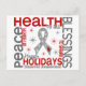 Pour voir la collection complète de cadeaux de sensibilisation de dessins exclusifs sur le diabète, veuillez visiter notre section sur le diabète à Quel meilleur moment pour partager des nouvelles de Paix, Santé et Bénédictions que pendant la belle saison de Noël. Notre nouveau design de vacances avec un brin gris éblouissant ruban de sensibilisation au diabète garni de délicats flocons de neige centré dans un cadre carré de sentiments de Noël inspirants vous donne un conduit parfait pour faire exactement cela! Un sprinkling d'autres flocons de neige complète cette salutation de Noël captivante pour livrer un message inspirant de sensibilisation au diabète pendant cette période de partage et d'amour. En tant que survivants du cancer, conjoints de survivants et passionnés de sensibilisation, nous sommes heureux de contribuer à de nombreuses organisations caritatives médicales, animales et du Darfour et vous invitations à penser à nous d'abord pour tous vos besoins de sensibilisation et de soutien au diabète.