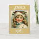Vacances avec un design graphique de Noël d'inspiration vintage et joyeuse. Portrait d'une jeune fille charmante et joyeuse portant un casquette en fourrure, montrant un sourire délicieux. Elle porte un casquette orné d'un faux orteil. Diffusez la fête avec un peu de "Joyeux Noël" ! Il est simple d'ajouter votre texte à l'intérieur en ce moment.