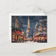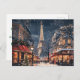 Partagez le charme de Paris avec la carte postale "L'Avenue Eiffel pétillante". Ce design présente une avenue enneigée bordée de lumières de vacances et d'arbres festifs, menant à la Tour Eiffel.
