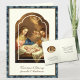Avec une belle crèche de Noël sur mesure avec Jésus, Marie et Saint Joseph et des anges célestes adorateurs. À l'intérieur se trouve un verset de l'Écriture de Noël et la même image que sur le devant dans un cadre ovale. Tous les textes et polices peuvent être modifiés.
