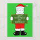 Un grand chat de dessin animé blanc en tenue Père Noël, contre un arrière - plan vert, brandissant une pancarte qui dit "Joyeux anniversaire de Noël".