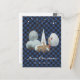 Cartes postales de Noël bleu mignonne avec une scène d'hiver aquarelle avec un dollar et un doe dans une forêt enneigée et étoiles brillantes au-dessus d'eux sur un arrière - plan de buffle bleu plaid. Personnalisez facilement cette carte postale de Noël bleu pastel avec votre nom de famille, votre adresse de retour et votre message.