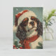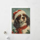 Prenez l'esprit festif avec notre carte de Noël design avec un charmant Cavalier King Charles Spaniel orné d'un chapeau de Père Noël. L'expression joyeuse sur le visage du chiot et l'accessoire sur le thème des fêtes créent une scène chaleureuse, parfaite pour répandre la joie de Noël à tous vos proches.
