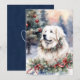 Noël - Chien des Pyrénées aquarelle allongé dans la neige avec couronne de Noël - Personnalisez avec votre message - Votre nom