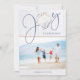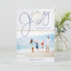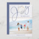 Cette photo de Noël côtière, nautique Joy Seashell Holiday Photo présente un coquillage rustique comme le "o" dans Joy sur un arrière - plan de bois blanc côtier, avec texte bleu bord de mer. Facile d'ajouter votre photo et les détails pour une carte de Noël amusante!