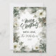 Organisez un rassemblement de vacances magique avec ce design de fête de Noël rustique, avec des fleurs d'anémones blanches, une verdure de pin dépoli, et des accents de neige chatoyants. Un choix intemporel pour des rencontres saisonnières, d'élégants dîners d'hiver ou des fêtes festives. Personnalisez facilement pour en faire la vôtre.