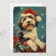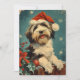 "Prenez la joie de la saison avec notre carte de Noël ornée d'un charmant Collie à épaulettes orné d'un chapeau de Père Noël festif. Ce design chaleureux apporte une touche de fantaisie de vacances et de joie de vivre à vos célébrations. Partagez l'amour et la chaleur avec cet adorable compagnon canin, rendant vos voeux de Noël particulièrement spéciaux."