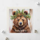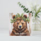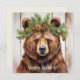 Cette carte de voeux de vacances à plat est ornée d'un ours de style aquarelle orné d'une couronne de boughs. Le texte "Joyeuses fêtes !" peut être édité et le dos est une crème simple où un message personnalisé peut être écrit.