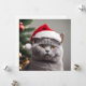 Joli chat British Shorthair bleu/gris portant un chapeau de Père Noël.