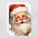Une carte de Noël plate avec une joyeuse illustration d'un Père Noël de style vintage aux joues rouges roses. portant son chapeau de santa rouge classique et son grand ours blanc. Un spring de saint ajoute à l'esprit festif de fête de ce design.