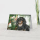 Teckel noir miniature avec une carte de voeux de regard vintage de vacances de photo d'arrière - plan de Noël