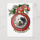 Célébrez la saison de Noël avec ce Deck the Halls design à l'aide de ce chien tibétain Terrier ! Portrait de chien est encadré dans un ornement de Noël, agrémenté de branches à feuillage persistant et d'autres ornements.