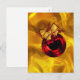 Une carte de Noël dorée lumineuse et colorée avec un ornement rouge brillant et vif sur le devant. La décoration de Noël est également dotée d'un nœud doré et de petites brindilles de feuilles rouges. Cette magnifique carte de vœux dorée de Noël très luxueuse fera certainement une impression très festive sur celui qui la reçoit.