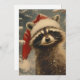 Célébrez la saison avec notre carte de Noël festive avec un adorable raton laveur portant un charmant chapeau de Père Noël. Ce design fantaisiste capte l'esprit de joie et de bonheur, ce qui en fait la meilleure façon d'envoyer des voeux de vacances chaleureux à vos proches.