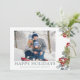 This design feobjets Christmas holiday red holly berries, with photo 2 wo family picture layout, botanical greenery winter foliage, a watercolor red green silver, elegant pine branch twig, classic traditional eucalyptus leaves, and-lettered scricalraphy, with modern calligraphy y script font, modern elegant simple trendy, a lovely multi photo collage Christmas holiday photo greeting