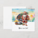 Envoyez des vacances ensoleillées avec ce Noël en Juillet Père Noël à la Beach Holiday Card! Dotée de Père Noël se tenant à la plage dans son équipement tropical, cette carte festive ajoute une touche ludique à vos salutations de vacances. Parfait pour Noël en Juillet fêté ou pour envoyer un message de vacances unique à des amis et à la famille qui aiment à la fois Noël et l'été. Les couleurs vives et le design amusant font de cette carte une excellente façon de répandre la joie et apporter un peu d'esprit de Noël de plage partout où vous allez. Que vous l'envoyiez à un ami ou que vous l'utilisiez comme un accueil d'été amusant, cette carte est sûre de leur faire sourire !