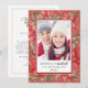 Célébrez votre premier Noël ensemble en tant que couple marié avec cette carte de vœux de fêtes Merrily Married Newlywed d'une grande finesse. Le design élégant et moderne met en valeur un poinsettia rouge éclatant et une composition florale de baies de houx verdoyantes sur un fond riche et lustré. Au cœur de la carte, un emplacement est prévu pour votre photo unique et charmante, encadrée par un script de calligraphie moderne avec les mots "Merrily Married". La palette de couleurs festives et vibrantes donne un ton chaleureux à la saison des fêtes. Chaque carte est fabriquée avec la plus grande attention aux détails, garantissant un objet visuellement époustouflant pour commémorer votre première saison des fêtes dans le bonheur conjugal. Capturant magnifiquement votre parcours rempli d'amour, cette carte de Noël deviendra sans aucun doute