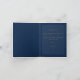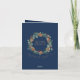 Écriture minimaliste et élégante Joyeuse carte de vacances de Noël avec 1 photo complète et une couronne botanique festive de feuillage de Noël sur le dos. avec beaucoup de place pour un message personnalisé. Situé sur une élégante et élégante arrière - plan bleu marine.