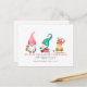 Envoyez vos voeux de vacances cette année avec ces mignons gnomes de Noël. Un gnome tient une lanterne pour un autre gnome tirant un traîneau avec un gnome de rennes amusant assis sur le traîneau. Personnalisez-le avec vos noms sur le devant, avec votre message et votre adresse de retour sur le dos.