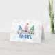 Gnomes de Noël GNOEL Greeting Holiday Card. Répandez des réjouissances de vacances avec cette carte de voeux de Noël fantaisiste avec trois gnomes festifs dans une scène hivernale enneigée. Le GNOEL, un message de bienvenue bleu et blanc ludique, ajoute une touche amusante à un message de vacances classique, parfait pour faire sourire famille et amis. À l'intérieur, ajoutez votre propre salutation de vacances personnalisée ou gardez l'exemple de message pour une note de saison joyeuse. Une façon délicieuse d'envoyer des souhaits chauds et festifs pendant la saison des fêtes. ASSISTANCE : Pour obtenir de l'aide sur la modification de la conception, le transfert de la conception à un autre produit ou si vous souhaitez coordonner des éléments, contactez le concepteur AVANT DE COMMANDER via l'onglet MESSAGE Conversation Zazzle ou envoyez un courriel à makeitaboutyoustore@gmail.com.
