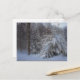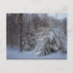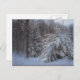 Cette carte postale présente des pins chargés de neige fraîchement tombée en Nouvelle-Angleterre.