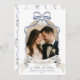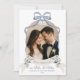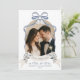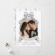 Célébrez la joie de votre première saison de vacances avec cet élégant Premier mariage de Noël carte photo. Portrait personnalisé d’un couple encadré d’accents de ruban d’aquarelle, de fleurs d’hiver festives et saintes, cette carte de Noël personnalisée pour les jeunes mariés est l’endroit idéal pour partager votre amour avec votre famille et vos amis. Le design met en évidence votre photo mariage, complétée par une police de caractères classique annonçant "First Christmas as Mr & Mrs", ainsi que vos noms élégamment imprimés ci-dessous.
