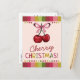 Envoyez un peu de gaieté avec une douce torsion ! Cette carte postale festive présente deux cerises rouge vif nouées avec un ruban rose, associées à l'accueil ludique "Cherry Christmas !" en lettres vives et colorées. Avec son arrière - plan rose pâle et ses bordures rayées, c’est une façon joyeuse de partager des souhaits de vacances qui se sentent frais et amusants.