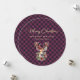 Carte de vacances en plaid de buffle mauve et or avec un accueil de vacances en script or et un renne sur un arrière - plan en plaid de buffle mauve. Personnalisez facilement cette carte de vacances violet et or avec votre nom de famille et un texte. L'effet de feuille d'or n'est simulé que dans l'illustration.