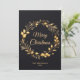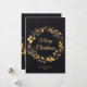 Cette magnifique carte de Noël moderne Elegant Festive Unique Black Gold Holiday Card possède un arrière - plan noir et des accents dorés luxueux, ce qui en fait le choix idéal pour ceux qui recherchent une touche haut de gamme et moderne à leurs salutations de vacances. Conçu avec le plus grand soin du détail, notre carte de Noël incarne l'esprit de la saison, livrant un message festif d'une manière vraiment unique et sophistiquée. La combinaison d'éléments contemporains et d'une couronne de Noël festive intemporelle en fait l'endroit idéal pour ceux qui recherchent une touche fraîche et élégante sur les thèmes traditionnels de Noël. Que vous l'envoyiez à des amis, à des familles ou à des associés d'affaires, cette carte de Noël de luxe est l'exemple du style et de la joie de vivre des vacances.
