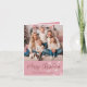 Photo de famille personnalisée, "Joyeux Noël". Arrière - plan rose rose rose rose avec élégant script bordeaux. Des flocons de neige dessinés à la main. Texte "Bonne année" à l'intérieur. Customisez chaque ligne si vous le souhaitez. L'opacité de la lumière à l'intérieur, permet l'espace pour votre propre message écrit personnel. Changez la photo de l'espace réservé, avec l'une des vôtres, pour un accueil chaleureux familial et saisonnier!