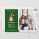 Ce dessin présente un gnome de Père Noël portant une pancarte disant "Nous avons déménagé !" Ajoutez une photo de famille dans votre nouvelle maison et des informations d'adresse sur le devant. L'arrière de l'hôtel présente des gnomes Père Noël avec des panneaux "Joyeux Noël".
