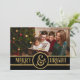 Cartes Pour Fêtes Annuelles Noël Photo Élégant Noir Or Joyeux et Lumineux