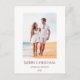 Carte de vacances Tropical Beach, avec un thème côtier et un design typographique rouge. Avec des lettres rouges personnalisables, vous pouvez ajouter votre propre texte. Vous changez aussi la photo avec votre propre pour faire spécial. Idéal pour envoyer des voeux de Noël de votre destination de vacances.