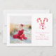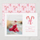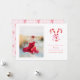 Carte de Noël Prépa Aquarelle Canne à Sucre Rubans Roses personnalisable avec photo et texte.