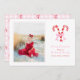 Carte de Noël Préparatoire Aquarelle Canne à Sucre Rubans Roses, carte de Noël personnalisée avec photo et texte modifiable.