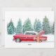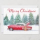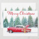 Chevrolet rouge et Conifers de Noël. "Joyeux Noël" Texte de voeux.