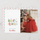 Cette carte photo de Noël ludique a un texte de couleur vive disant "Joyeux Noël" avec un patten diamant sur le dos. Les couleurs sont rose, rouge, vert et bleu clair.
