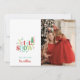 Cette carte photo de Noël ludique a un texte de couleur vive disant "Laisse-le neiger" avec un patten diamant sur le dos. Les couleurs sont rose, rouge, vert et bleu clair.