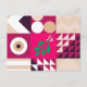 Coloré rose et bordeaux design moderne de vacances de Noël géométrique avec mistletoe. Bourgogne, rose, marron foncé et beige. Tout le texte est entièrement personnalisable.