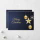 Salutation de Noël Ornements dorés Carte de vacances bleu marine. Unique, beau, design élégant. Facile à personnaliser. Le style de police, la taille et les couleurs peuvent être modifiés. Des éléments correspondants sont disponibles.