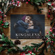 Une carte de voeux de vacances photo moderne et design avec votre nom de famille dans la typographie classique associée à un script manuscrit en blanc sur une photo pleine taille. Votre photo spéciale sera magnifique dans ce design unique, audacieux et minimal. Le design comporte une magnifique couleur noire foncée au verso et de l'espace pour laisser un message personnel optionnel à vos amis et votre famille. Un design minimaliste saisissant pour se démarquer de la foule cette saison de noël! L'image montrée n'est à des fins d'illustration que pour être remplacée par votre propre photo. L'image de l'espace réservé est celle d'un joyeux jeune couple qui s'embrasse.